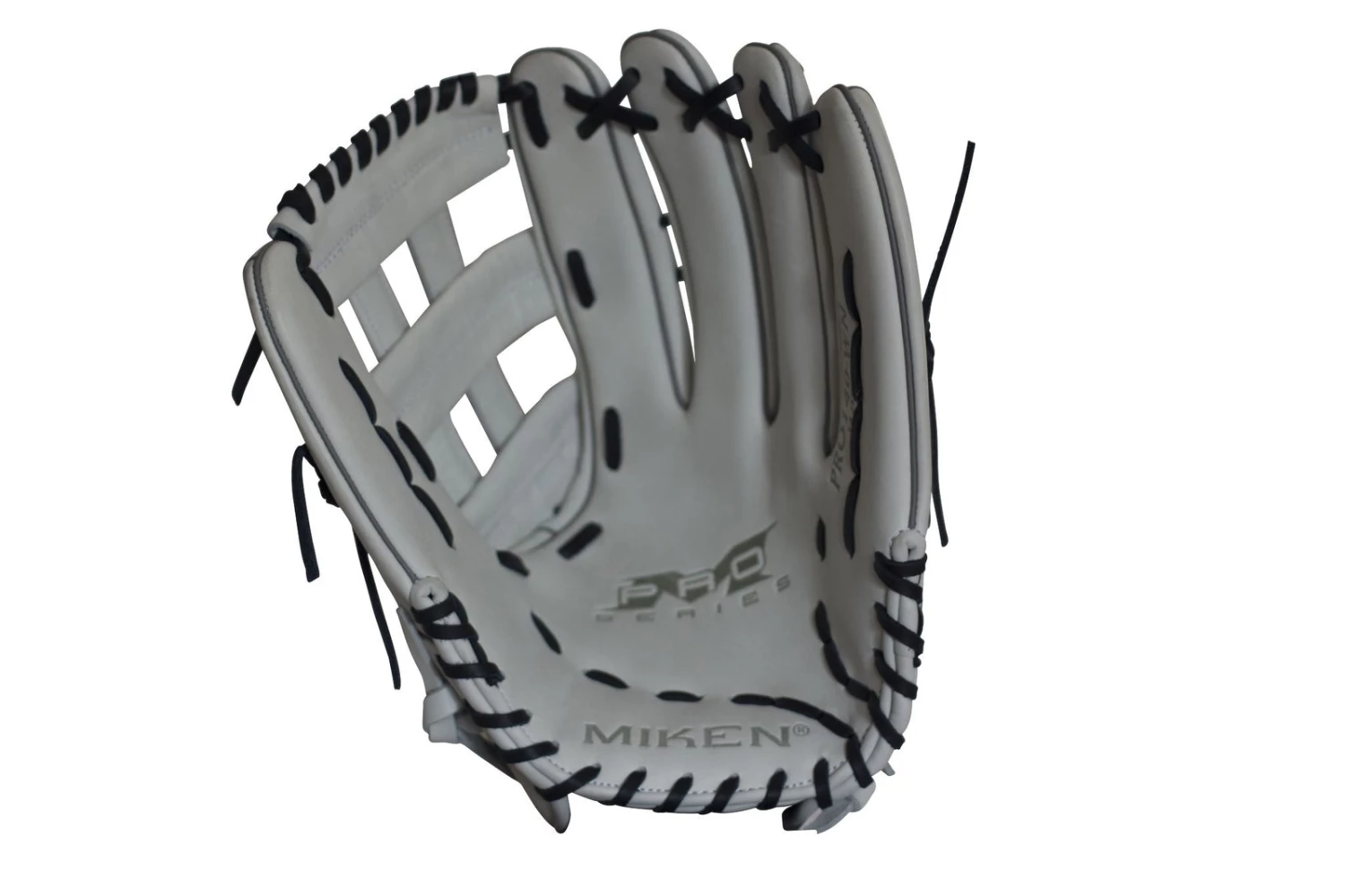 Miken Pro-Series Fielding GlovesAuthentic professional Slowpitch specific patterns and constructionQuality soft full-grain leather provides improved shape retention and limited player break in.Features Poron XRD palm and index finger pads designed to significantly reduce ball impact.Custom fit, adjustable non slip pull strap back.70% Factory Break-In, 30% Player Break-In.