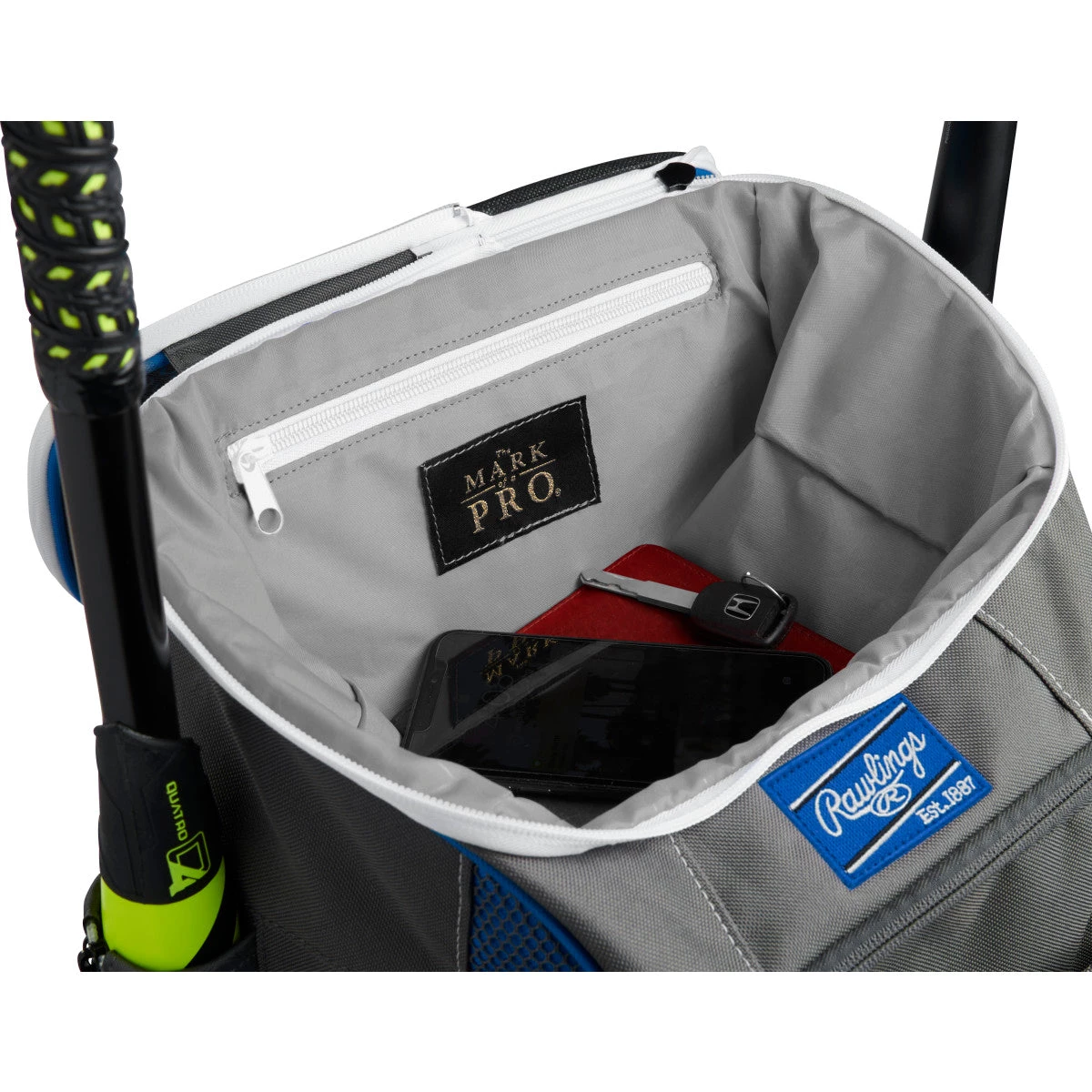 IMPULSE BACKPACK•Two (2) neoprene bat storage locations•Customizable top valet tray and MARK OF A PRO valuables compartment•Two (2) removable custom team decoration locations (valet tray and beaver tail)•Main storage compartment converts to game time shelf for easy access to gear•Internal cleat/turf storage compartment•Fully structured & easy to clean tarpaulin bottom material